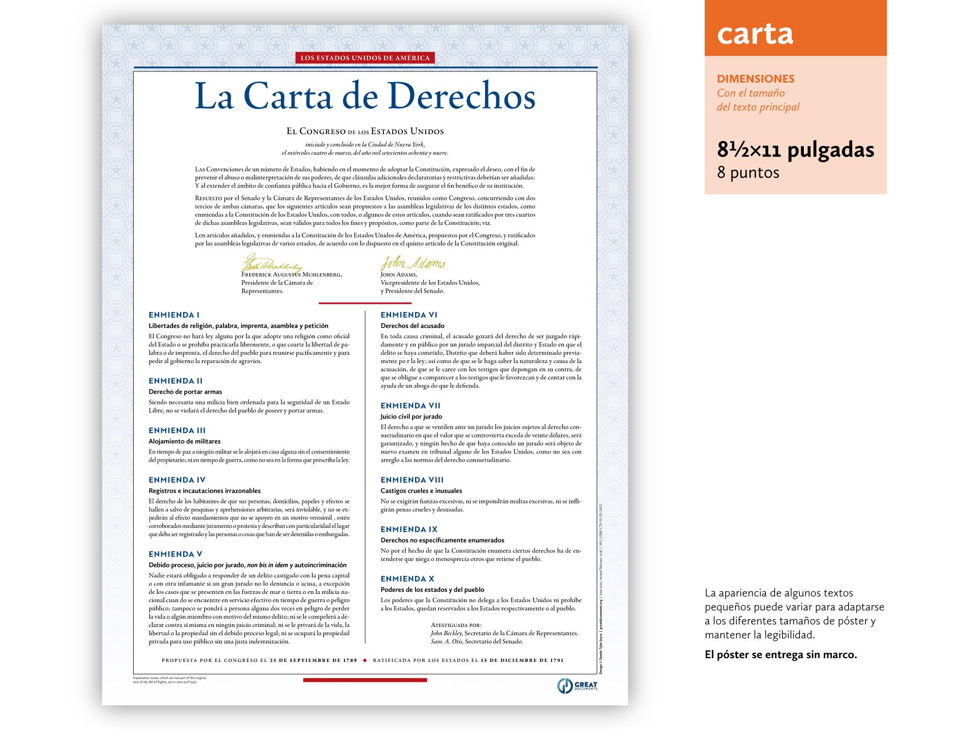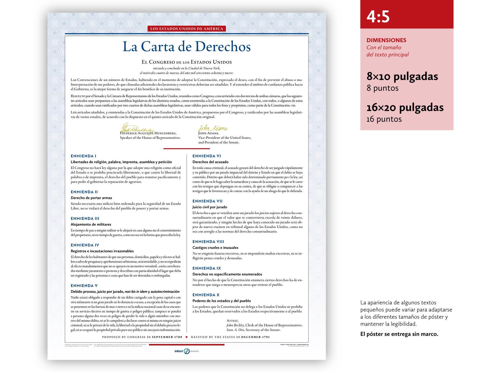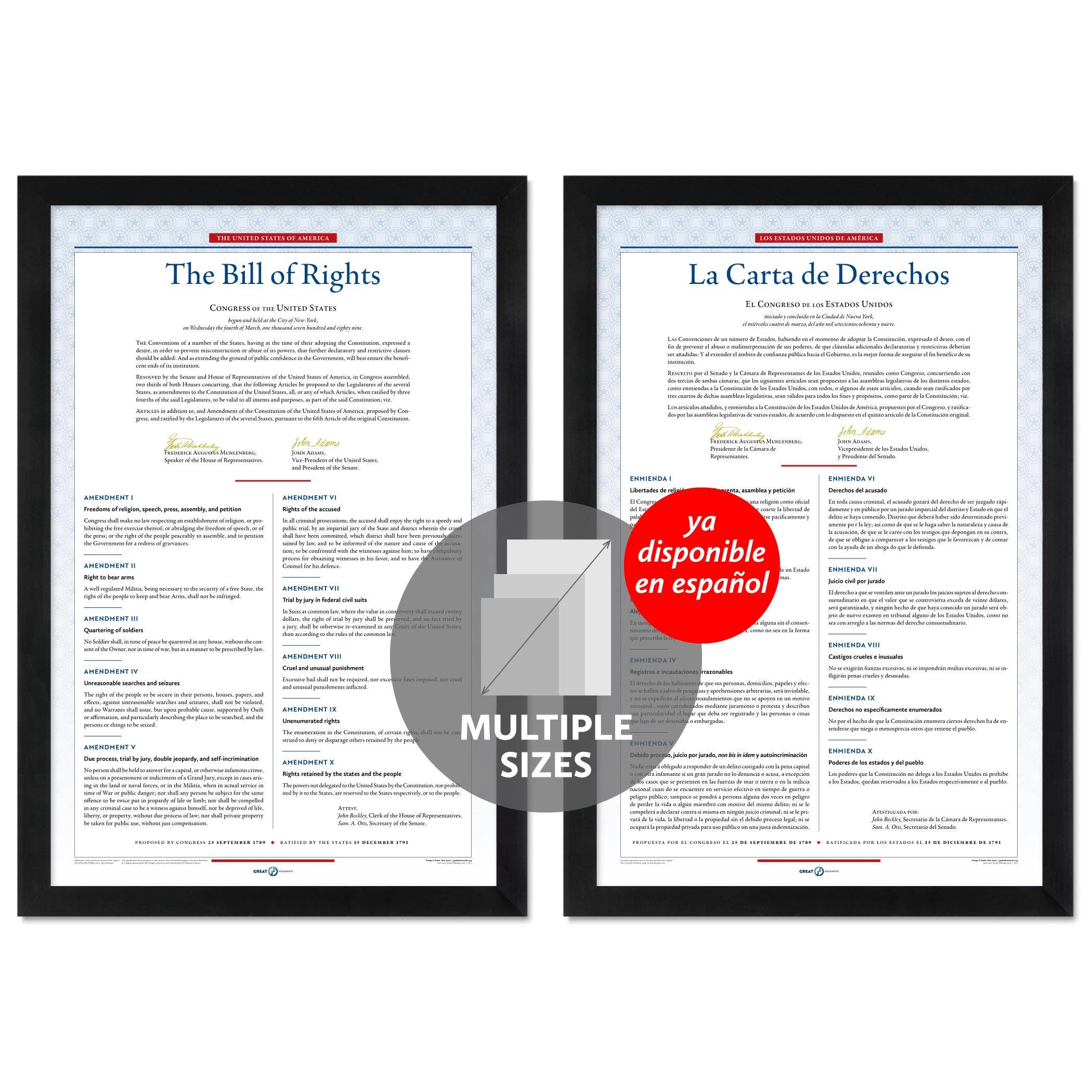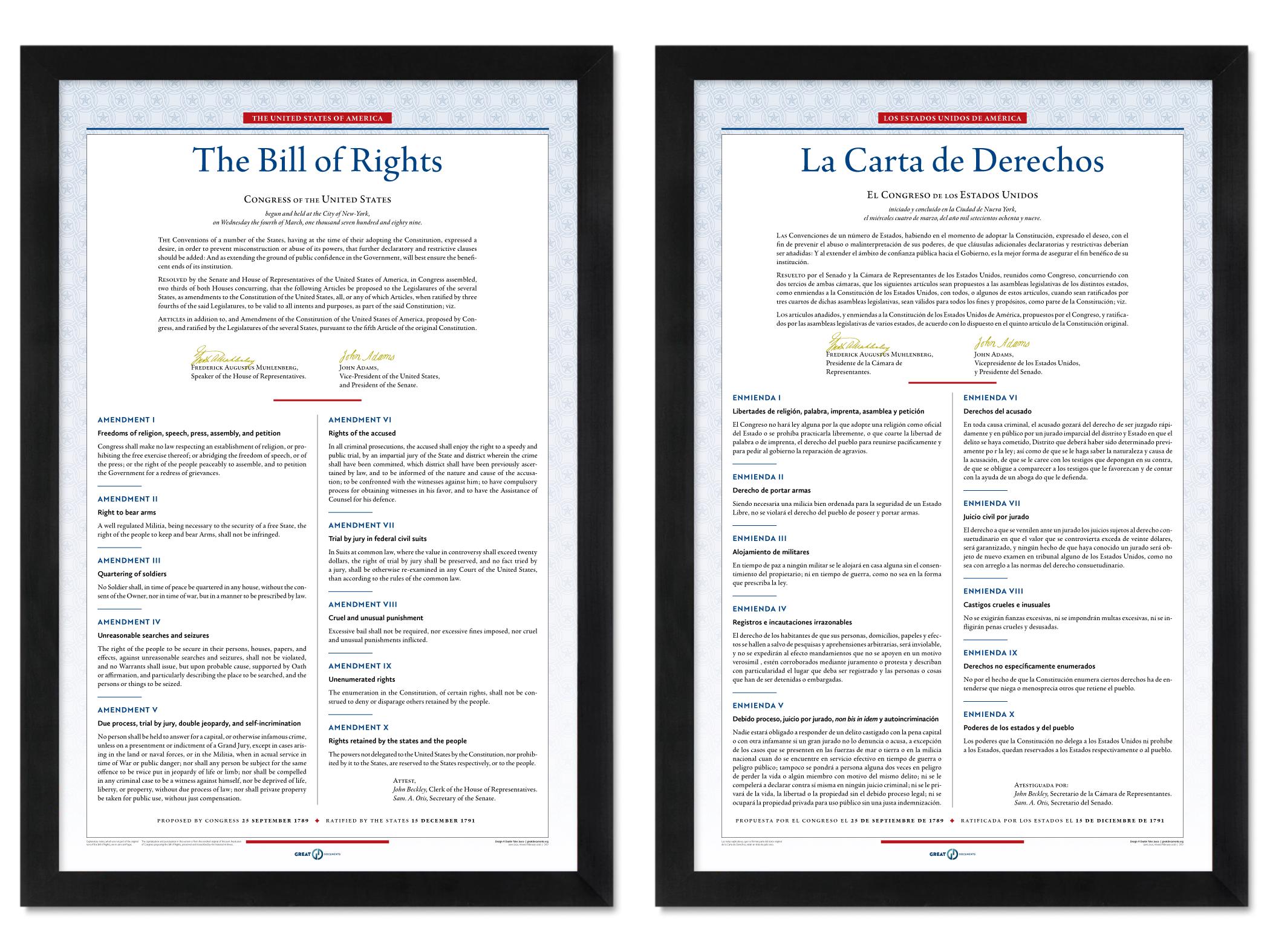 The United States Bill of Rights: A print in multiple sizes — now also available in Spanish