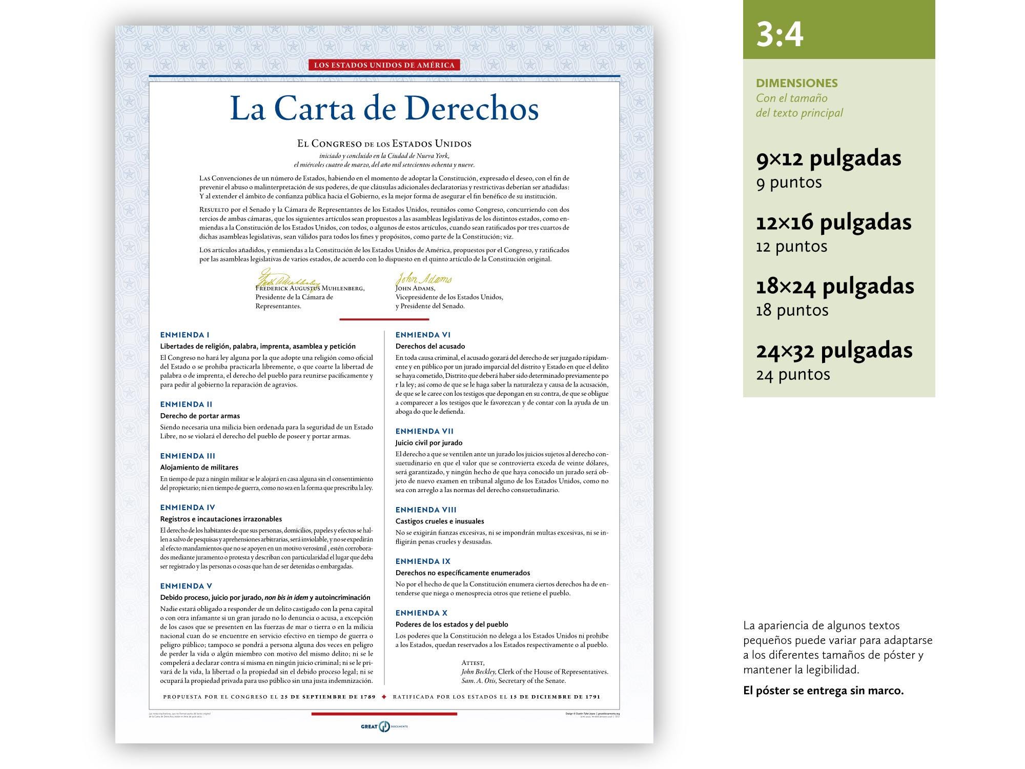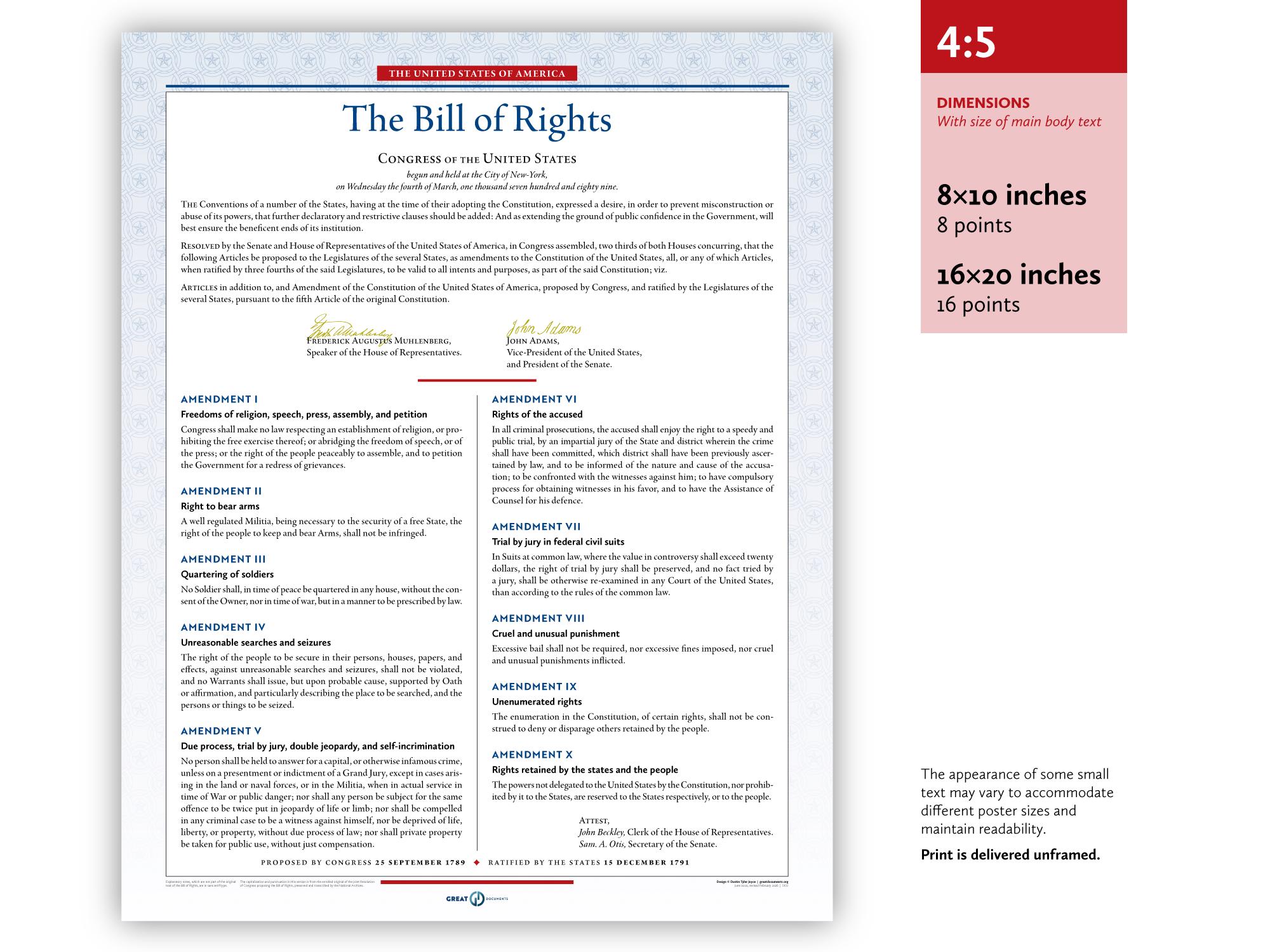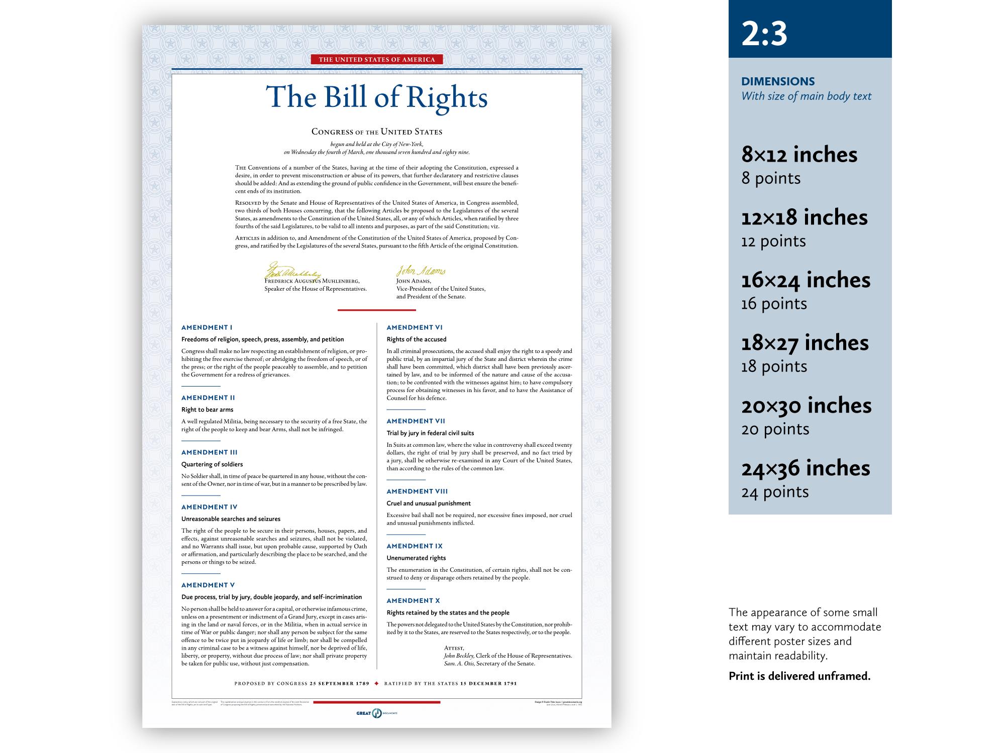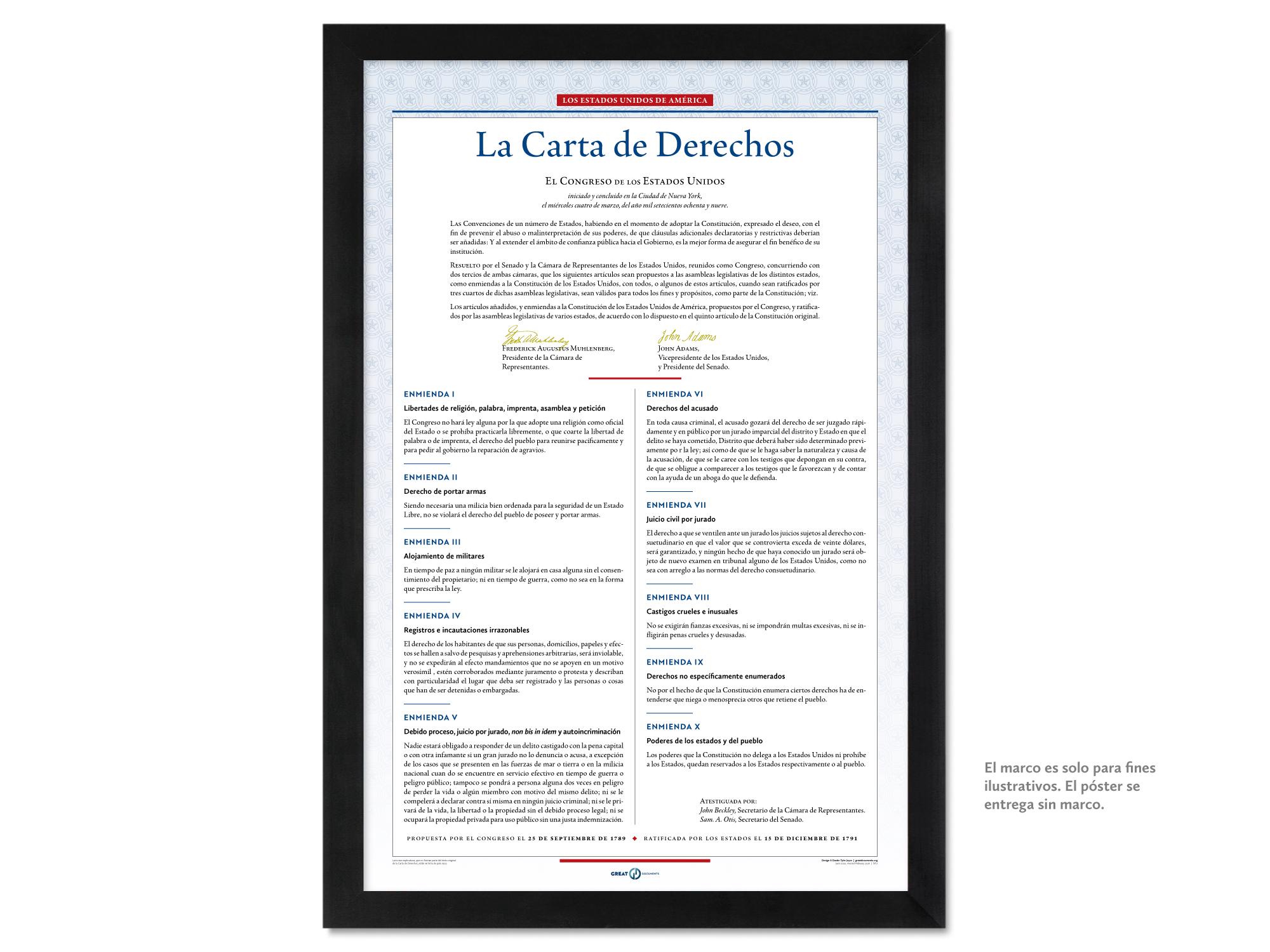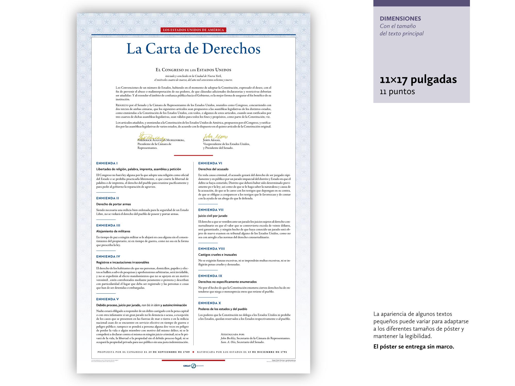 The United States Bill of Rights: A print in multiple sizes — now also available in Spanish