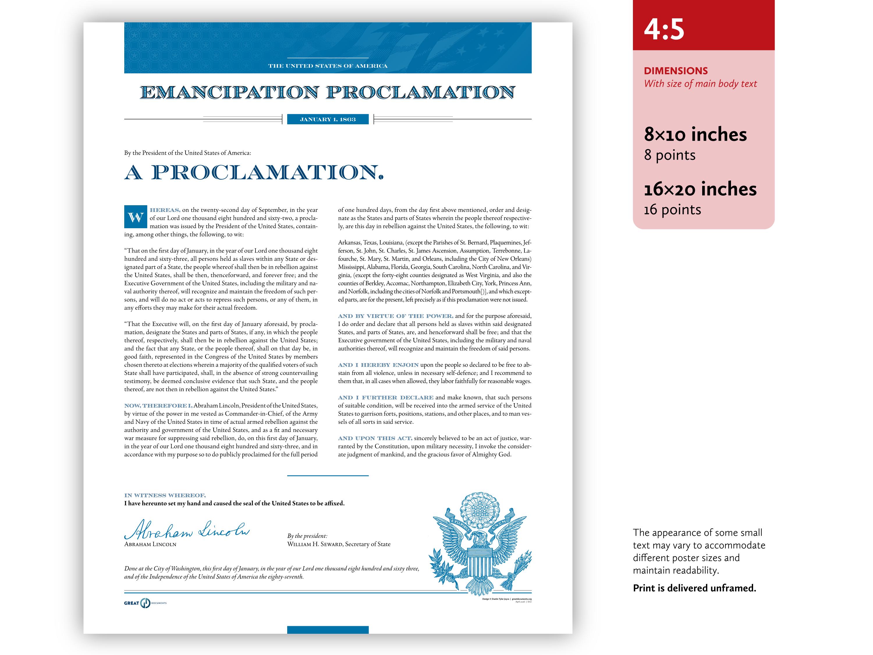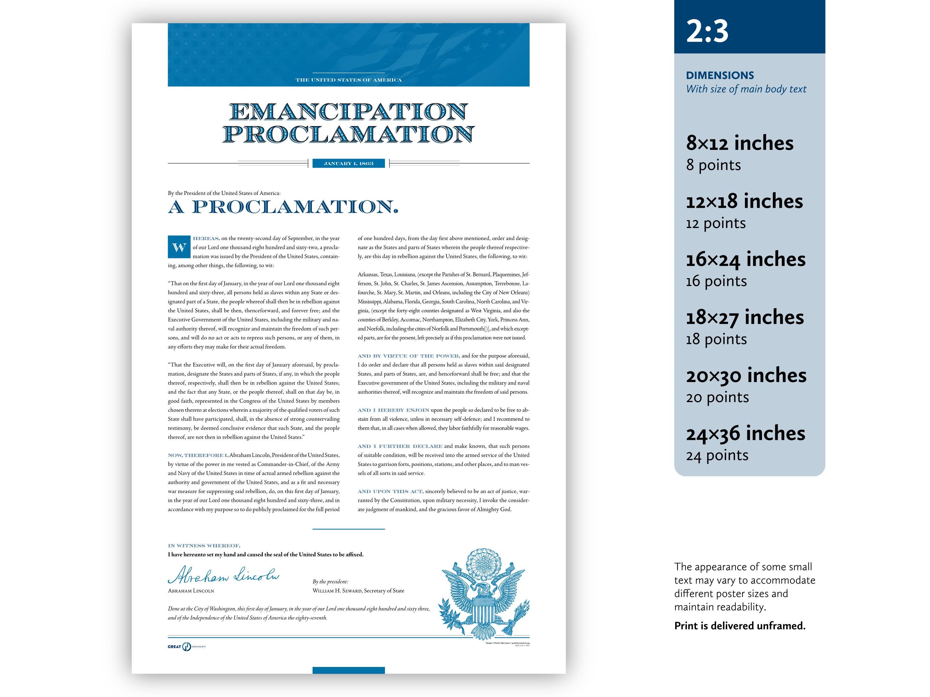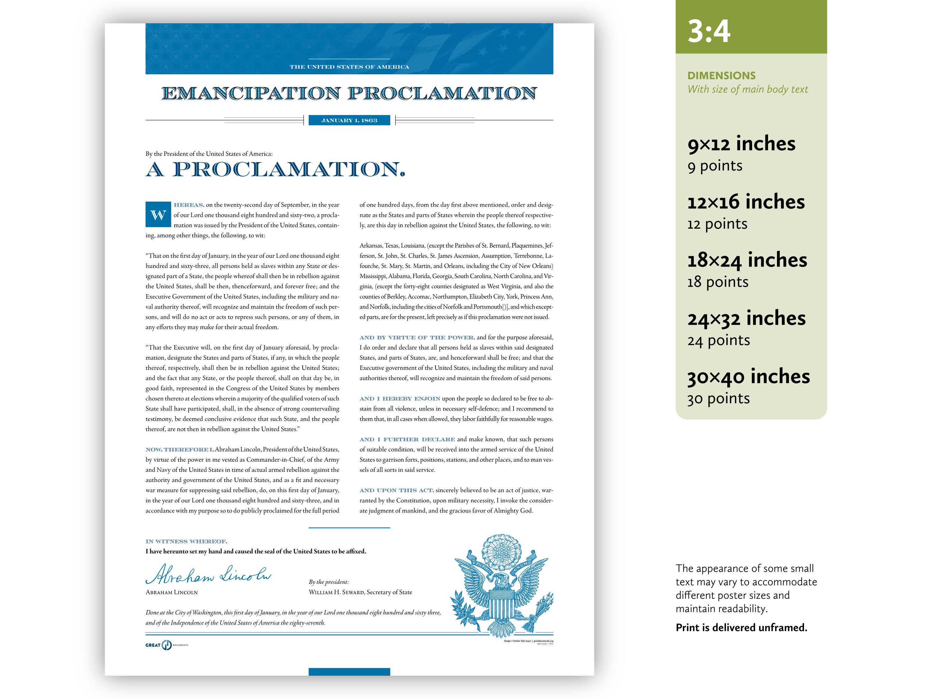 A modern print of the 1863 Emancipation Proclamation in readable, contemporary type, available in multiple sizes