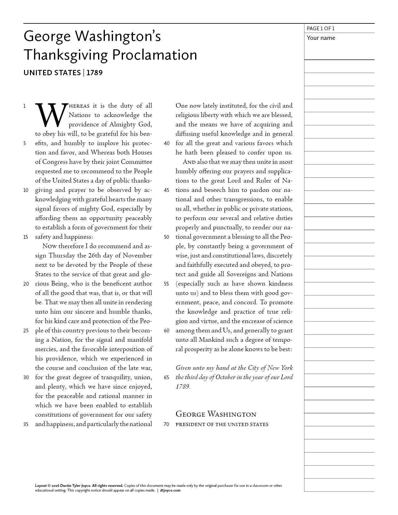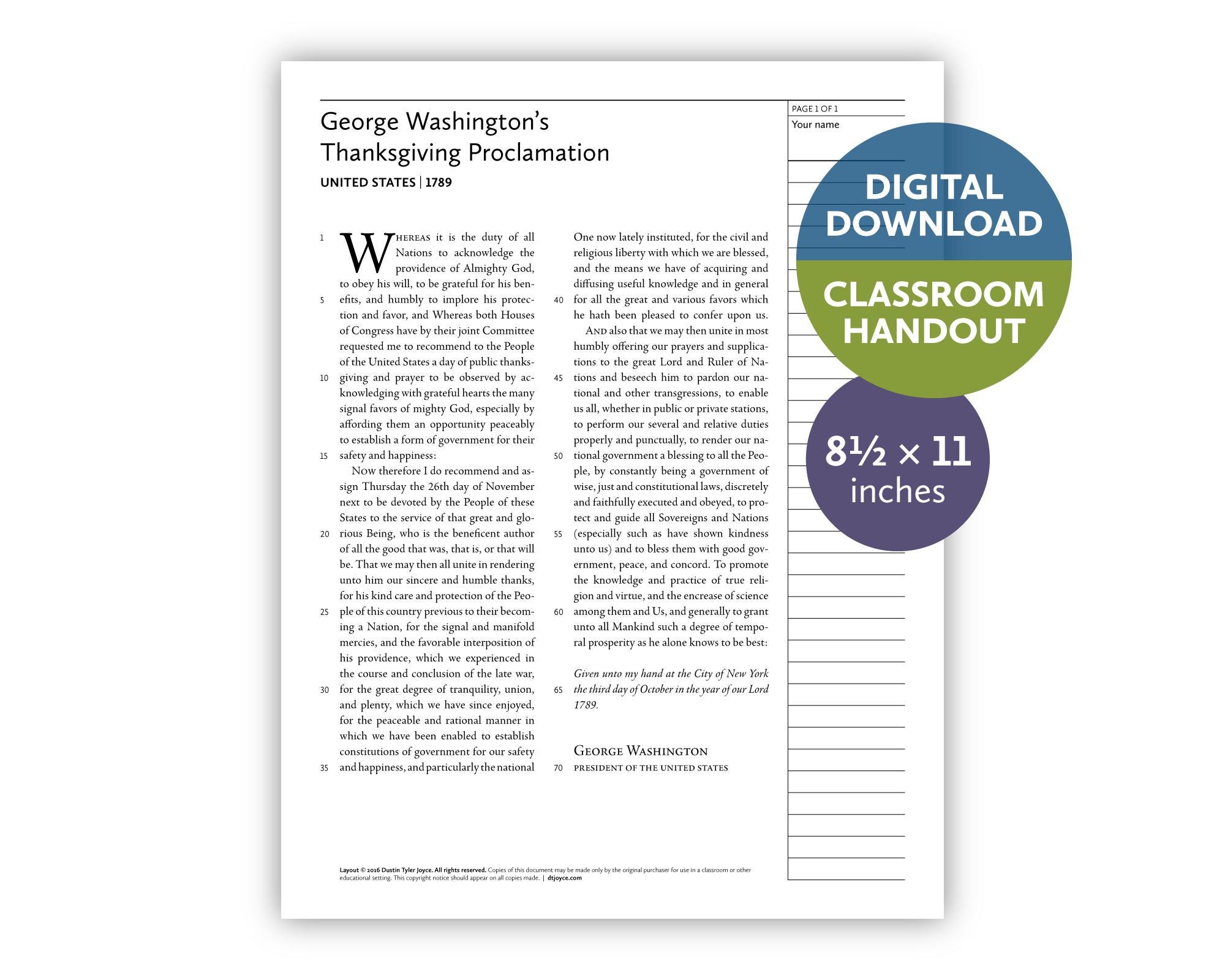 George Washington’s Thanksgiving Proclamation (United States | 1789) — Digital download — Classroom handout — 8.5x11 printable for teachers